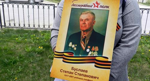 Женщины рассказали, что привезли штендеры с портретами своих близких. «Это дедушка моего мужа Степан Буслаев, всю войну прошел шофером, - рассказала женщина. – Он прошел также плен. Дедушка молчал, он не рассказывал о войне, он просто начинал плакать, когда речь заходила о войне. Всю свою послевоенную жизнь он боялся, что его заберут за то, что он попал в плен».