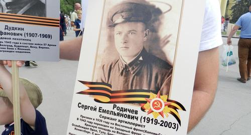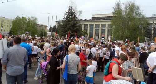 По словам женщины, она принесла штендер с портретом своего деда Владимира Лочинова. «Он прошел всю войну, был связистом, дошел до Берлина, у него орден Красного знамени, - рассказала женщина. – Мой муж пришел с портретом своего деда. Ходить в «Бессмертном полку» надо для того, чтобы помнили наши дети и внуки об этой войне».
