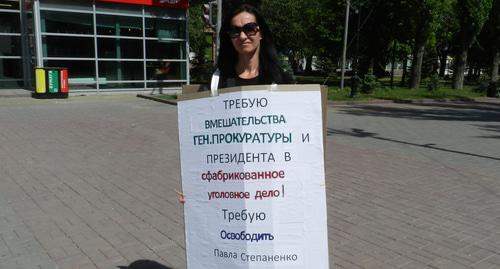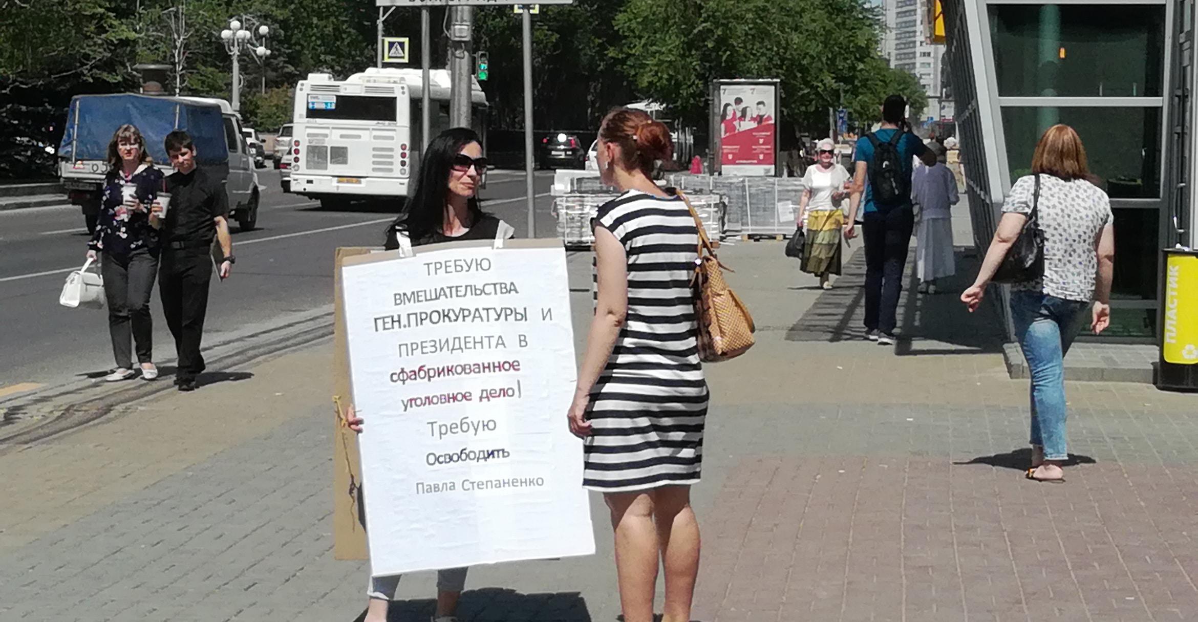Сегодня Татьяна Степаненко провела одиночный пикет, выйдя на пересечение аллеи Героев и проспекта Ленина в Волгограде с плакатами: "Требую вмешательства Генпрокуратуры и президента в сфабрикованное уголовное дело! Требую освободить Павла Степаненко" и "Требую прекратить пытки в Тракторозаводском суде. Требую освободить незаконно содержащегося под стражей Павла Степаненко". Пикет продолжался с 13.30 до 16.40 мск, сообщает корреспондент "Кавказского узла".