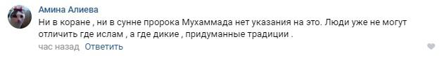 Некоторые читатели решили прокомментировать свои ответы. "Кто-нибудь говорит о том, что обрезание должно правильно выполняться? Что при правильном выполнении операции никто калекой не остается! Это аналог мужского обрезания", - написал Арсен Курбанов в обсуждении темы опроса на странице "Кавказского узла" в соцсети "ВКонтакте". "Ни в Коране, ни в сунне пророка Мухаммада нет указания на это. Люди уже не могут отличить где ислам, а где дикие, придуманные традиции", - высказала свое мнение там же Амина Алиева.