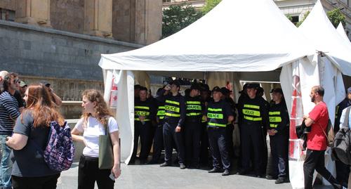 Полицейские выбросили из трех палаток у здания парламента в Тбилиси вещи протестующих и заняли палатки. Владелец палаток выразил недовольство тем, что правоохранители заняли их, сообщил с места событий корреспондент "Кавказского узла".