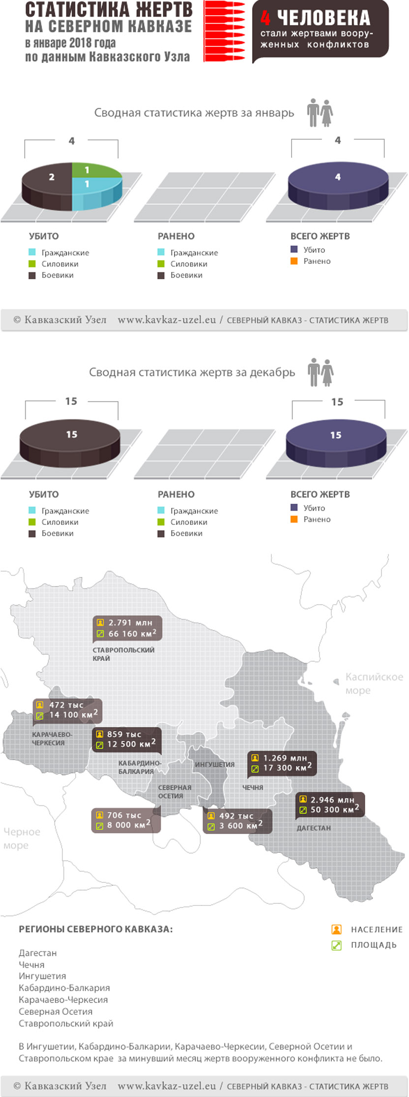 Инфографика. Статистика жертв на Северном Кавказе в январе 2018 года по данным Кавказского Узла