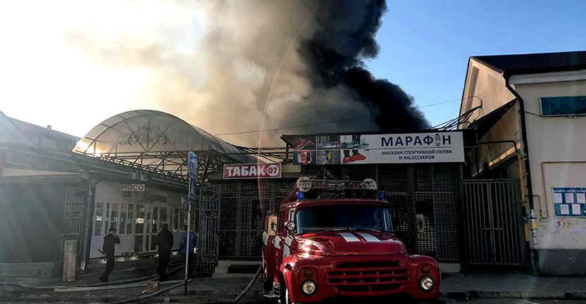 Как писал "Кавказский узел", 16 апреля на нальчикском рынке произошел крупный пожар. Его площадь составила более 3 тысяч квадратных метров. Очаг возгорания находился в кондитерском павильоне, сгорели также прилегающие к павильону магазинчики, палатки и кафе. Материальный ущерб в результате пожара понесли 427 предпринимателей. Следствие рассматривало несколько версий произошедшего, в том числе замыкание электропроводки, поджог и неосторожное обращение с огнем. Приоритетной версией власти сочли замыкание электропроводки, а торговцы - поджог.