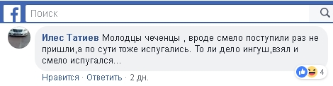 "Молодцы чеченцы, вроде смело поступили, раз не пришли, а по сути, тоже испугались. То ли дело ингуш, взял и смело испугался", - с иронией отметил Илес Татиев.