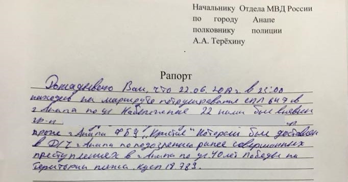 Бекмурзиев сказал также, что ему не отдали протокол задержания. Он обратился в отдел собственной безопасности полиции и 25 июня планирует написать заявление в краевую прокуратуру, а также уполномоченному по правам человека в регионе.