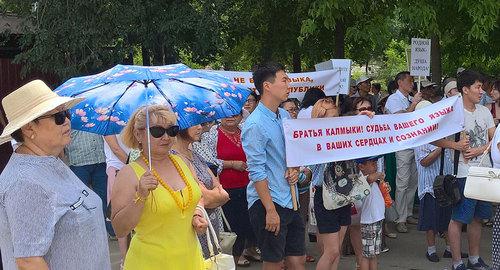 Как сообщал "Кавказский узел", митинг против законопроекта о добровольном изучении родных языков прошел 14 июля в Элисте параллельно со спортивными и развлекательными мероприятиями, устроенными мэрией в том же месте. Участники протестной акции сочли действия властей попыткой сорвать митинг.
