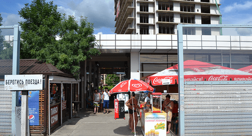 Улица Просвещения застроена так плотно, что два автомобиля на ней не смогут разъехаться. Для этого нужно искать "карман", чтобы пропустить идущий навстречу транспорт. Тротуары отсутствуют. Строения на улице граничат с железнодорожным полотном. Многоэтажные дома плотно примыкают к железнодорожным путям, находясь в их охранной зоне. В малоэтажных строениях, плотно примыкающих друг к другу, имеется множество частных гостиниц, кафе и магазинов, где торгуют фруктами и овощами. Почти нигде нет уголка потребителя и не выставлены документы о праве на оказание платных услуг. Сгоревший самострой, который использовался как гостиница и кафе, соседствовал с одной стороны с салоном красоты, с другой стороны шла торговля фруктами, передает корреспондент "Кавказского узла".