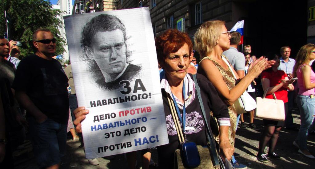 Большая часть площади Ленина во время акции была огорожена, а работающая спецтехника вынуждала демонстрантов отходить к краю площади, окруженной полицейскими. В руках активисты держали плакаты "Нет пенсионной реформе в России", "За Навального! Дело против Навального – это дело против нас", "Свободу политзаключенным, нет полицейскому государству", "Путин – это война и кризис".