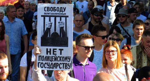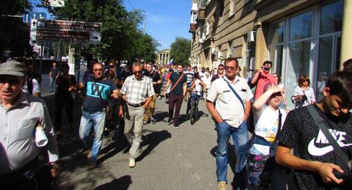 Шествие возглавили несколько молодых людей. Они несли в руках флаги России и выкрикивали лозунги: "Нет пенсионной реформе!", "Свободу политзаключенным!", передал корреспондент "Кавказского узла".