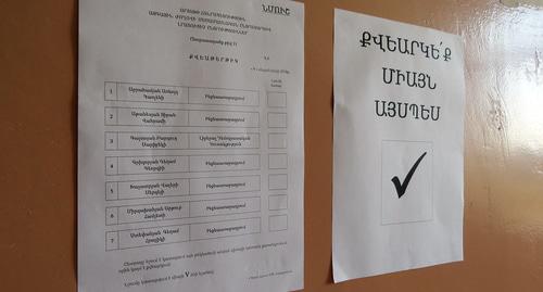 С утра голосование проходило пассивно, зато вечером наблюдался основной наплыв граждан, рассказал корреспонденту "Кавказского узла" председатель избирательного участка села Члдран Мартакертского района Артур Цатрян.