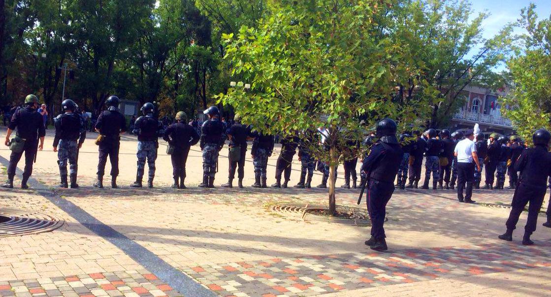 "После того как я отказался сдавать отпечатки пальцев, мне сказали, что я буду ночевать в КПЗ. Очень много задержанных, поэтому их начали отпускать до судов", - сообщил активист корреспонденту "Кавказского узла".