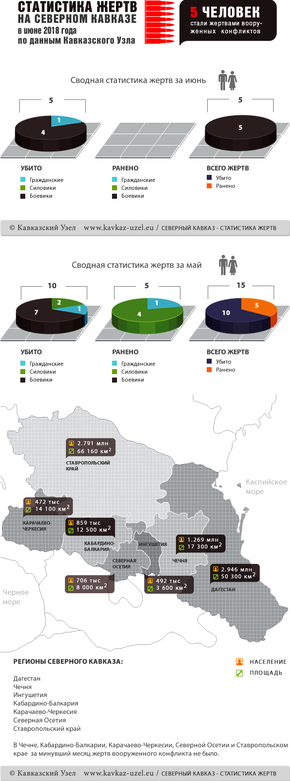 Инфографика. Статистика жертв на Северном Кавказе в июне 2018 года по данным Кавказского Узла