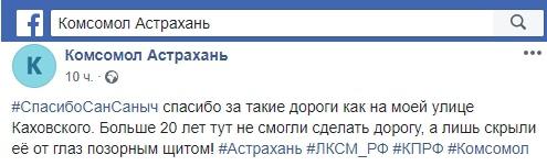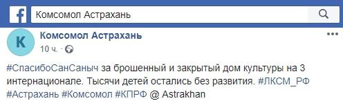 В социальной сети Facebook на странице "Комсомол Астрахань" опубликованы посты с упреками в адрес Жилкина, в частности, за проблемы с закрытием социального объекта и ремонтом дороги.