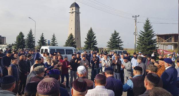 Она также опубликовала видео, на котором один из участников акции подтвердил, что Юнус-Бек Евкуров вышел к собравшимся. "Вышел и ушел", - сказал мужчина. "Он к толпе хотел выйти?" - спросила автор видео. "Да, хотел поговорить", - ответил участник акции. На вопрос "А толпа не захотела?" - мужчина ответил, что "толпа не дала ему". "Не дали ему говорить?" - уточнила автор видео. "Не дали", - подтвердил участник акции в диалоге, расшифрованном "Кавказским узлом".