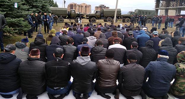 "Все стоящие в оцеплении силовики – ингушской национальности", - заверил корреспондента "Кавказского узла" член Совета молодежных организаций Ингушетии Хасан Кациев.