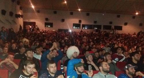 "Я уже пять лет болею за Хабиба Нурмагомедова. За это время не пропустил ни один его бой. Мы за него болеем всей семьей... Я пришел в кинотеатр со своим братом. Хабиб - дагестанец и нужно его поддержать. Для меня это важно, и я надеюсь, эта поддержка поможет Хабибу", - рассказал корреспонденту "Кавказского узла" один из зрителей Мурад Курбанов.
