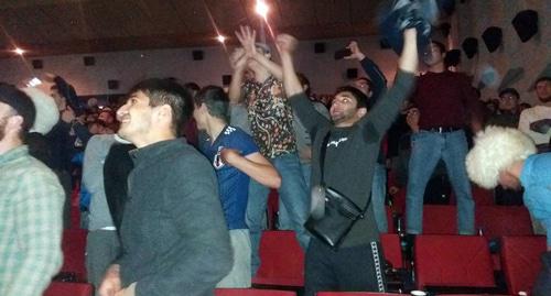Когда Конор показал, что сдается, махачкалинский зал взорвался овациями, те, кто стоял или сидел в ближних рядах, бросились к экрану, но их оттуда отстранили волонтеры. Постепенно эмоции зрителей начали спадать, они не понимали, что происходит. Судья еще не объявил победителя, но Конор Макгрегор уже покинул октагон, в зале в Лас-Вегасе началась потасовка, а из восьмиугольника вышел и Хабиб Нурмагомедов. Однако вскоре рефери объявил о победе дагестанца, и зал повторно начал ликовать. Весь зал дагестанского кинотеатра, примерно 820 посадочных мест, был заполнен. Люди сидели даже на ступенях лестниц.