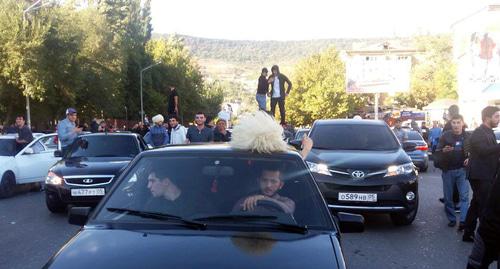 После того, как окончательно стало известно имя победителя, люди начали выходить на улицу. Здесь они тоже не скрывали своих эмоций. Они пошли к проезжей части, блокировали движение на перекрестке проспекта имама Шамиля и улицы Магомеда Ярагского. Десятки людей группировались и танцевали лезгинку. Движение на обеих улицах было остановлено. Кто-то бросал машины там же и присоединялся к праздновавшим победу дагестанца, передает корреспондент "Кавказского узла".