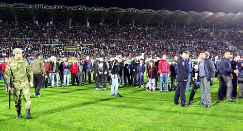 После прилета в Махачкалу Хабиб Нурмагомедов, одержавший победу над ирландцем Конором Макгрегором, приехал на стадион "Анжи-Арена", где встретился с болельщиками. Фанаты не смогли усидеть на месте и бросились на поле, чтобы быть ближе к бойцу. Нурмагомедов прокомментировал драку после боя, сказав, что "орлы в клетке не сидят". Опрошенные "Кавказским узлом" болельщики заявили, что Макгрегор спровоцировал Нурмагомедова и поплатился за это.
