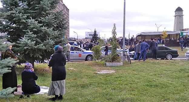 Как писал "Кавказский узел", 4 октября глава Ингушетии Юнус-Бек Евкуров подписал республиканский закон об установлении административной границы с Чечней, а противники этого закона объявили о начале бессрочной акции протеста. Акция будет считаться санкционированной с 8 по 15 октября, но только в дневное время, заявило 6 октября правительство республики. Сегодняшний намаз в центре Магаса собрал тысячи людей. Организаторы подали заявку на продолжение акции.