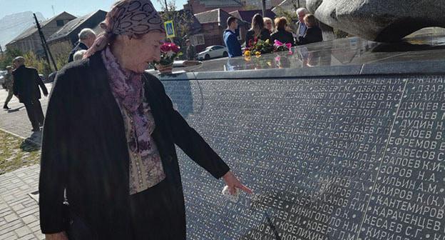 Мемориал с именами расстрелянных во время репрессий. Владикавказ, 30 октября 2018 г. Фото Эммы Марзоевой для "Кавказского узла"Раиса Кертанова также сегодня рассказала историю своей семьи, отметив, что никогда не видела своего отца Османа и до сих пор не знает, что же с ним точно произошло.