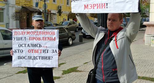 Активисты собрались у знака "Нулевой километр" в центре Астрахани на групповой пикет 30 октября с плакатами: "Требуем усилить общественный контроль за деятельностью мэрии" и "Полумордвинов (экс-глава администрации Астрахани. - Прим. "Кавказского узла") ушел – проблемы остались. Кто ответит за последствия?", передает корреспондент "Кавказского узла".