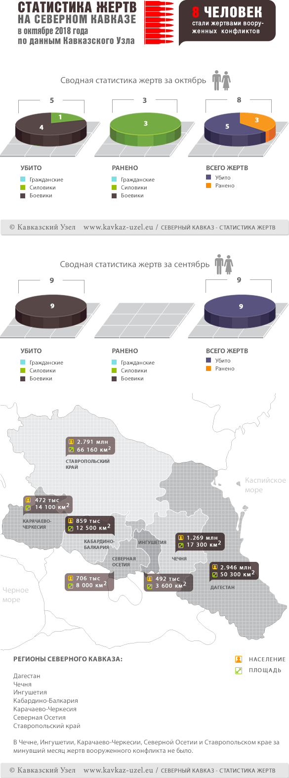 Инфографика. Статистика жертв на Северном Кавказе в октябре 2018 года по данным Кавказского Узла