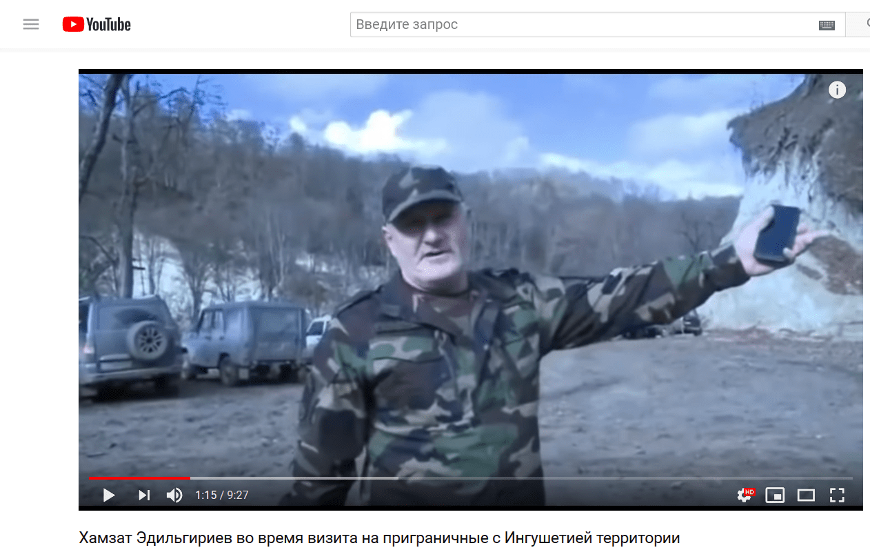 На видео Эдельгериев перед строем вооруженных силовиков интересуется, не беспокоят ли их "наши братья-мусульмане с сопредельной стороны". Затем он произносит длинную речь об ингушах, чеченцах и приграничных территориях.