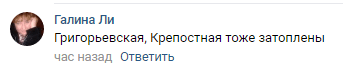 "Григорьевская, Крепостная (станицы, - прим."Кавказского узла") тоже затоплены... Вроде МЧС пытаются откачать воду хотя бы с дороги. Автобуса в обед уже не было, как муж доберется с работы вечером, не знаю", - написала пользователь Галина Ли.