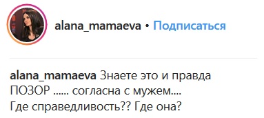 "Знаете, это и правда ПОЗОР... Согласна с мужем... Где справедливость?? Где она?" - прокомментировала решение суда в своем аккаунте в соцсети instagram супруга футболиста Алана Мамаева.