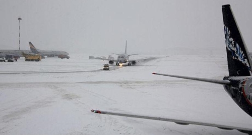 Из-за наледи, образовавшейся на взлетной полосе, воздушная гавань не принимает и не отправляет самолеты.