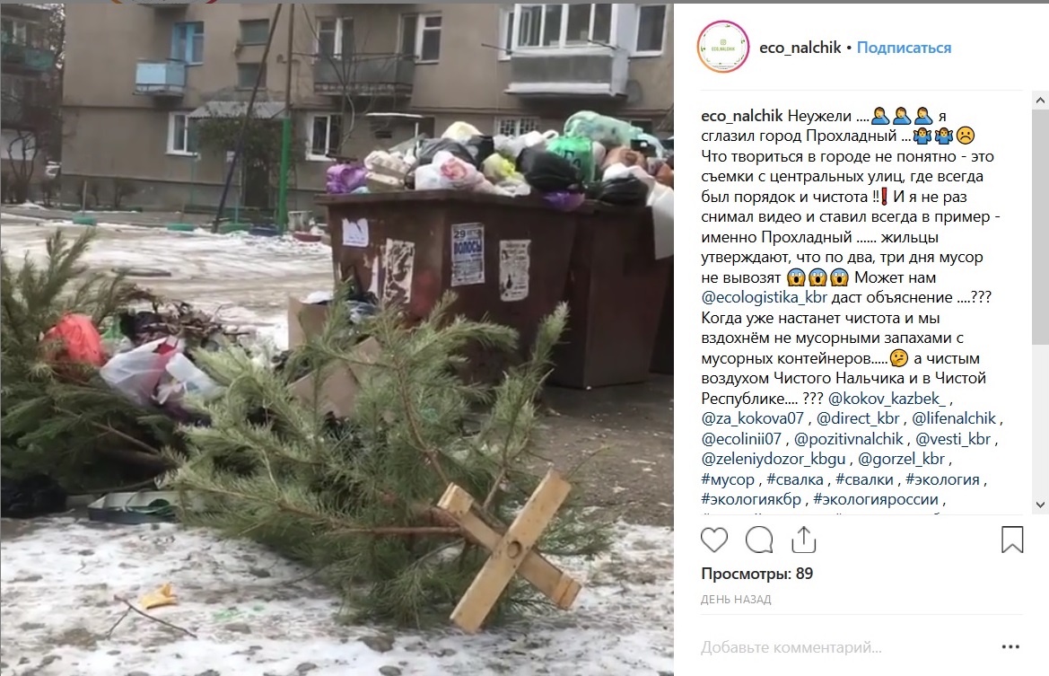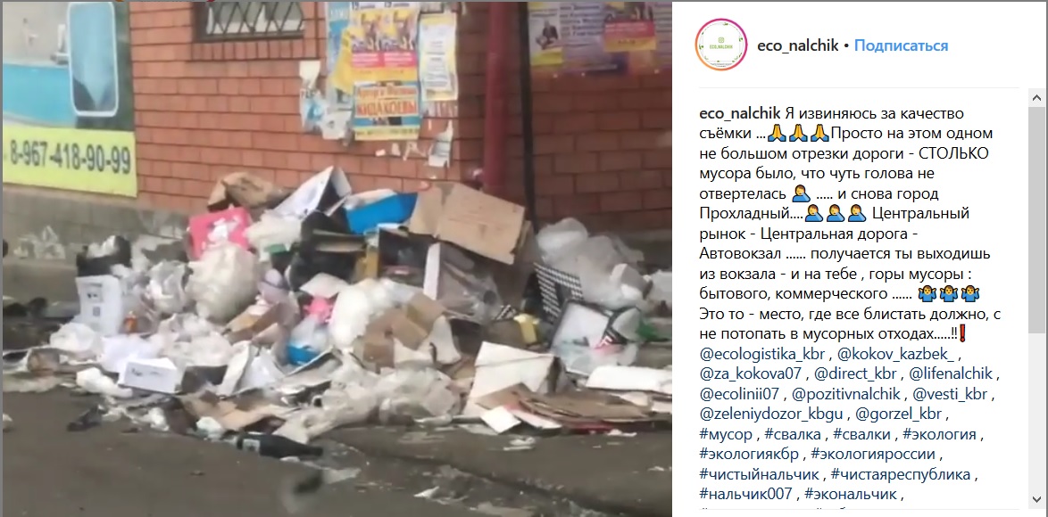 Видеозаписи о ситуации с мусором в Прохладном были опубликованы в паблике eco_nalchik в соцсети Instagram.
