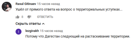 "Потому что Дагестан следующий на растаскивание территории", - ответил пользователь lezgivakh.