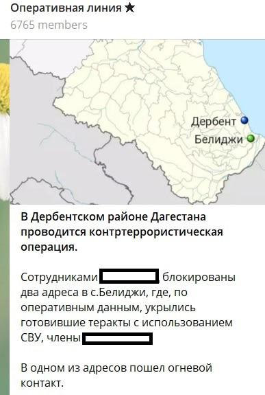 По данным на 15.00 мск 19 февраля, на сайте МВД России по Дагестану, а также Национального антитеррористического комитета России нет данных о спецоперации в Дербентском районе Дагестана.