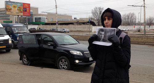 В пикете с фотографией Немцова также постояла астраханка Елена Байбекова.