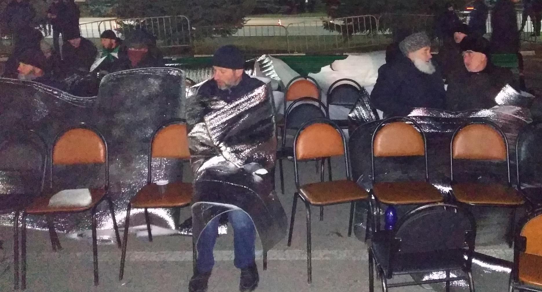 На фоне слухов о готовящемся разгоне акции (дополнение «Кавказского узла» от 9.00 мск 27.03.2019: информация о планах разгона акции обсуждалась не только в сети, но и непосредственно участниками протеста на площади после общения с силовиками) дискомфорт протестующим доставляет холод: температура воздуха ночью опустилась, участникам акции приходится кутаться в пледы и теплоизоляционные подложки, чтобы не замерзнуть. Волонтеры раздают на площади горячий чай и пирожки, проблемы с мобильной связью сохраняются, сообщил корреспондент "Кавказского узла".