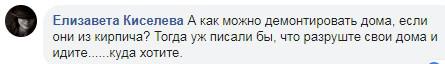 "А как можно демонтировать дома, если они из кирпича? Тогда уж писали бы, что разрушьте свои дома и идите... куда хотите", - отмечает там же Елизавета Киселева.