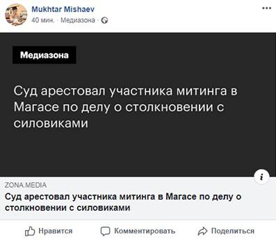 На своей странице в Facebook Мухтар Мишаев поставил репост этой статьи на сайте издания.