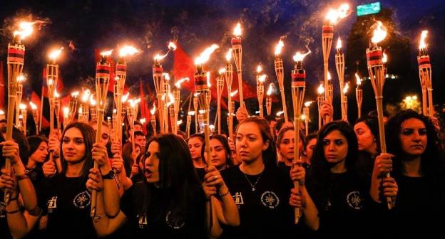 Факельное шествие организовали студенческий союз "Никол Агбалян" и Молодежный союз Армянской революционной федерации "Дашнакцутюн", передает "Панорама".