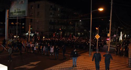 Традиционное факельное шествие в память жертв геноцида армян в Османской империи началось в Степанакерте сегодня в 20.00 по местному времени (19.00 мск). Отправной точкой шествия стала церковь св. Акопа, где прошла поминальная служба по невинным жертвам геноцида. Участники двинулись по центральному проспекту Степанакерта к мемориальному комплексу, чтобы там, у памятника-колокольни, возложить цветы и поставить свечи, передал корреспондент "Кавказского узла".