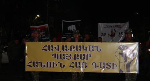 Он отметил, что факельное шествие "Дашнакцутюн" организует с 2003 года, причем не только в столице, но и в районных центрах и в ряде сел Нагорного Карабаха. "23 апреля вечером во всем мире, где есть армянская диаспора, проходит факельное шествие памяти жертв геноцида армян 1915 года в Османской империи. Наше требование - чтобы международное сообщество дало соответствующую оценку этой трагедии и вынудило виновника ответить за содеянное преступление", - заявил Бено Мирзоян.