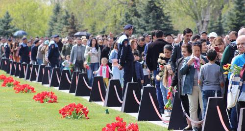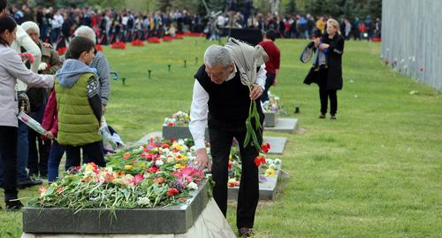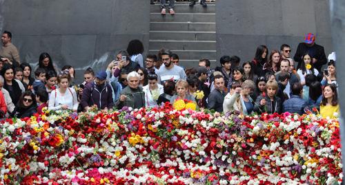 Жители Армении почтили 24 апреля память жертв геноцида армян в Османской Турции в 1915 году. До позднего вечера они приходили к мемориальному комплексу памяти жертв геноцида "Цицернакаберд", чтобы возложить цветы, передает корреспондент "Кавказского узла".