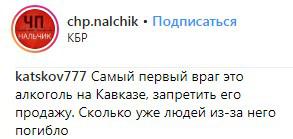 "Самый первый враг это алкоголь на Кавказе, запретить его продажу. Сколько уже людей из-за него погибло", - пишет там же katskov777.
