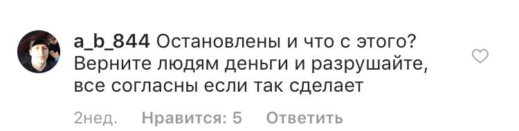"Остановлены – и что с этого? Верните людям деньги и разрушайте", - считает a_b_844.