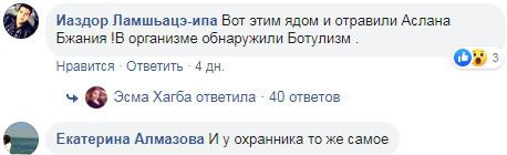 «Вот этим ядом и отравили Аслана Бжания», - заявил один из комментаторов Иаздор Ламшьацэ-ипа. «И у охранника то же самое», - написала там же Екатерина Алмазова.