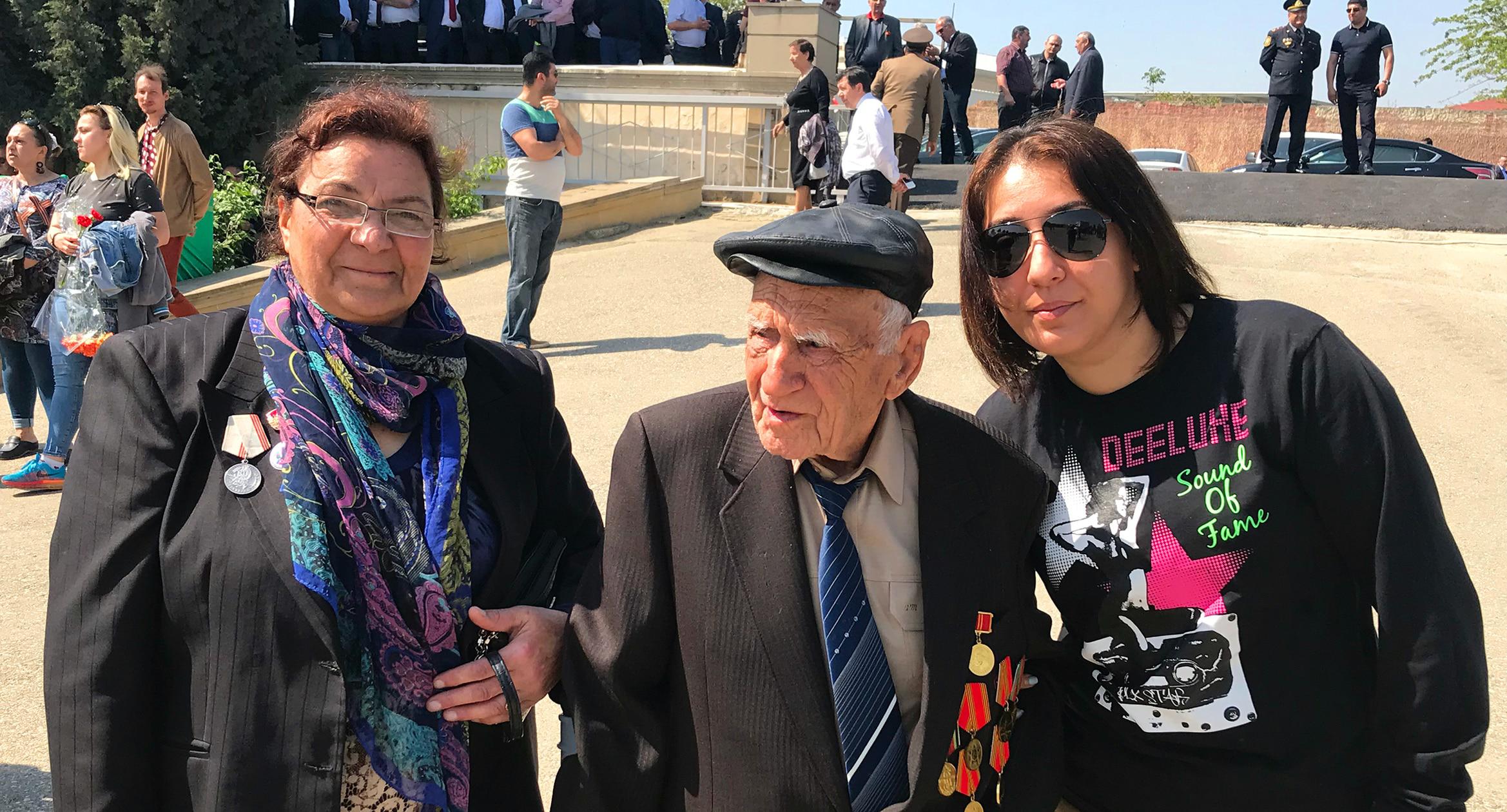 97-летний Тамлейха Гасанов рассказал, что воевал за освобождение Крыма, Румынии, Венгрии. "Закончили войну мы в Вене", - уточнил он. По словам Гасанова, он также доволен государственной заботой, получая каждый месяц 400 манатов (около 240 долларов).