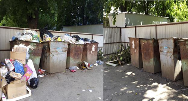 Сегодня в десять часов утра были переполнены мусорные баки на улице Шогенцукова, 20 в Нальчике. К полудню баки уже были пустые, передала корреспондент "Кавказского узла".