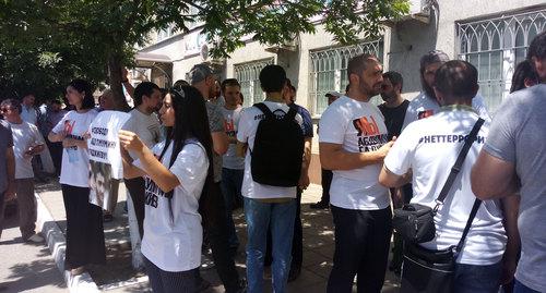 Перед зданием суда проходит пикет в поддержку Абдулмумина Гаджиева, уточнил Telegram-канал "Спросите у Расула", опубликовав фото, на котором изображены около двух десятков человек, из которых по меньшей мере двое – в футболках с надписью "Я/мы Абдулмумин Гаджиев".