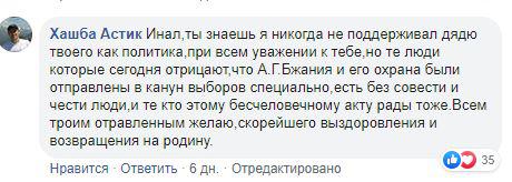 Пользователи соцсети поддержали версию родственников об отравлении. "...Бжания и его охрана были отправлены в канун выборов специально...", - написал Хашба Астик.