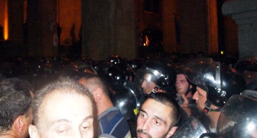 Акция протеста в Тбилиси за отставку глав МВД и Службы госбезопасности в Тбилиси. Фото Беслана Кмузоваа для "Кавказского узла"В клинике меня прооперировал врач Александр Шулаия - очень аккуратно наложил несколько швов на рассеченную кожу на темени.